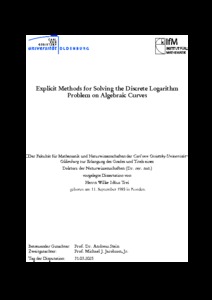 Trei, Wilke Idäus (2026) Explicit Methods for Solving the Discrete Logarithm Problem on Algebraic Curves. PhD, Universität Oldenburg.