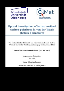 Lackner, Lukas Sebastian (2026) Optical investigation of lattice confined exciton-polaritons in van der Waals (hetero-) structures. PhD, Universität Oldenburg.